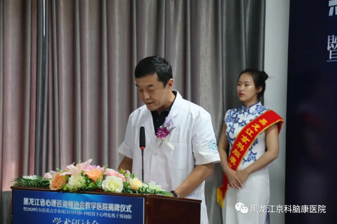 黑龙江京科脑康医院院长赵永刚在仪式上发表致辞,他指出,黑龙江京科脑康医院自建院以来一直致力于为龙江人民群众提供优质、便捷的心理健康服务,设立心理咨询室,面向社会开展心理咨询服务。决不辜负各级领导的重托和人民的期望,为医疗卫生事业的发展尽心竭力,为经济社会发展提供强有力的健康保障。